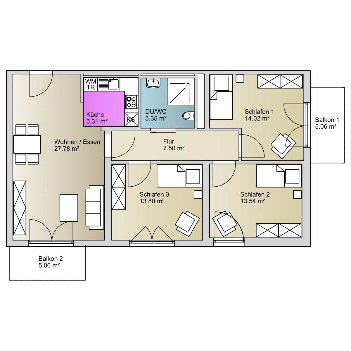 51 barrierefrei Wohnungen mit Balkon von 46 m² bis 93 m²